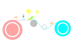 ブリードアウト層に非常に有効ですがワイプ材質とリキッド液種、接圧などをコントロールしないと細かいキズが入る場合があるので慣れと実績が必要です。更に粘着ロールでマイクロな静電気異物を除去します。