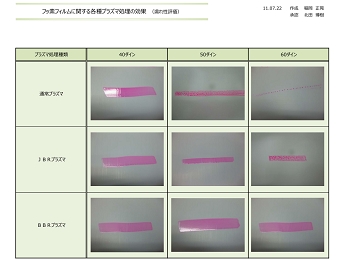 接触角が低くなりました。 1回で変化するものは比較的イージーで数回処理したりパワーを上げたり、混合活性ガスを投入したりとその材料に合った処理方法を探究します。