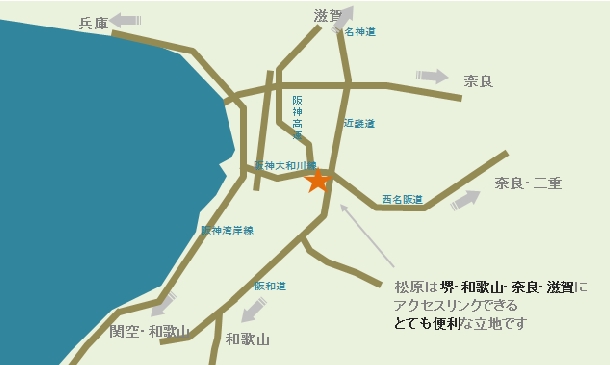 物流環境の良い松原にて御社の製品流通をスピーディにサポートします。