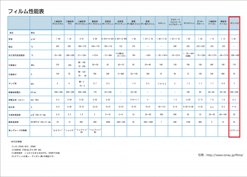 物性は表の通りですが、触ってて感じることは滑り性が良くはないので巻取りの際に