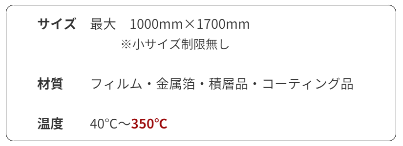 カット品、ロールtoロール、どちらも対応可能な設備を保持しております。