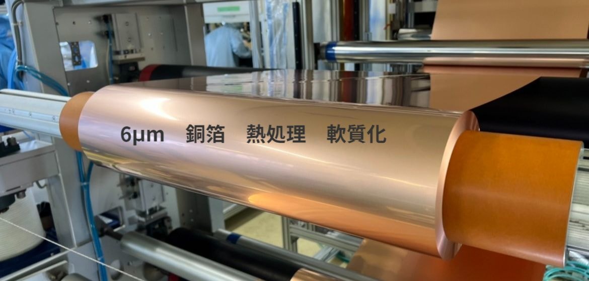 銅箔は薄く巻かれている状態が主流ですが、高温炉は窒素ガスを充填して酸素と置換し、更に巻き戻し展開した材料が高温炉にインサートされる際の酸素の巻き込まれ対策も解決。薄い箔は4μから